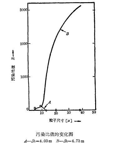 該過濾管在1.2和1.9m壓頭差下下操作獲得凈化產(chǎn)品,其污染程度低于1ppm。在壓頭差為4.0米0米時(shí)則污染程度約可達(dá)3PPmo污染系數(shù)的定義是污染的油與凈化的油中計(jì)數(shù)粒子的比值不同壓力下,粒子大小與污染比值的關(guān)系見圖,曲線中污染比值和粒子分布系指凈化油被水所污染。