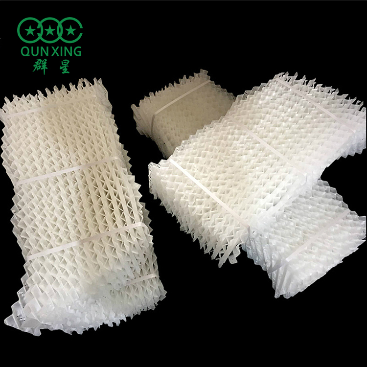 斜交錯(cuò)填料:具有技術(shù)先進(jìn),設(shè)計(jì)合理,數(shù)據(jù)可靠,經(jīng)久耐用,經(jīng)過試驗(yàn)和生產(chǎn)運(yùn)行表明冷卻效果好,通風(fēng)阻力小,親水性能強(qiáng),接觸面積大等優(yōu)點(diǎn),它采用圈料和螺桿組裝兩種形式,傾斜角一般為60度,主要用于圓型逆流式冷卻塔。